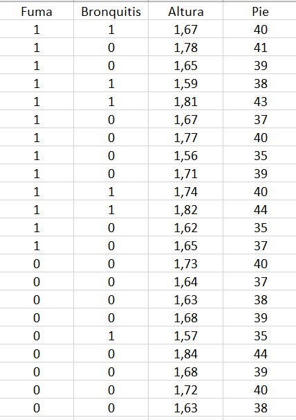 Sin embargo, si sabemos que una persona es fumadora, entonces la probabilidad de que tenga bronquitis crónica pasa a ser de 5/13; o sea 0.3846 por uno; ó 38.46%.