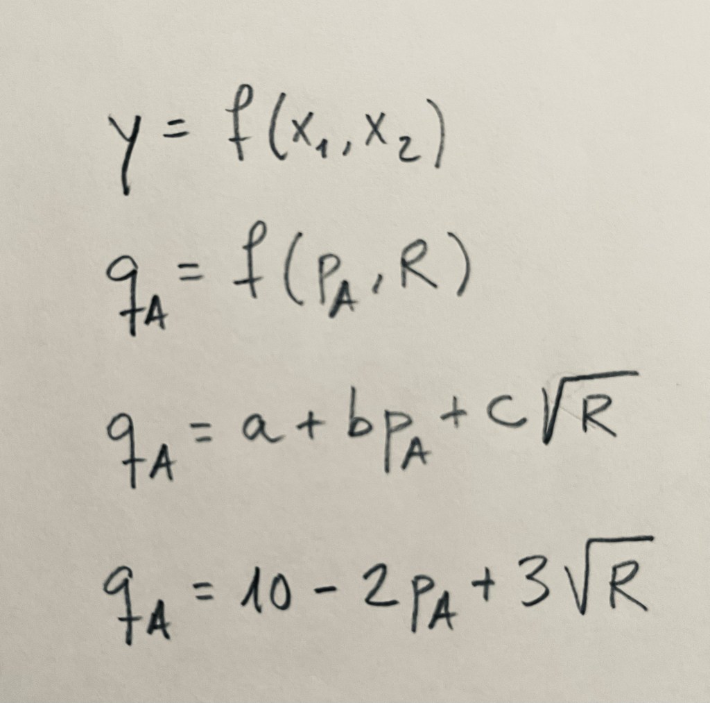 Se trata de una función de demanda de un producto A expresada en cuatro niveles distintos de abstracción o de concreción, expresada únicamente en función del precio de ese mismo producto.