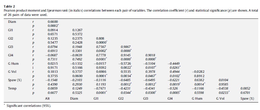 30.En la tabla siguiente, ¿podría ser que el p-valor de la correlación entre log(Imax) y T fuera p=0.01? ¿Por qué?