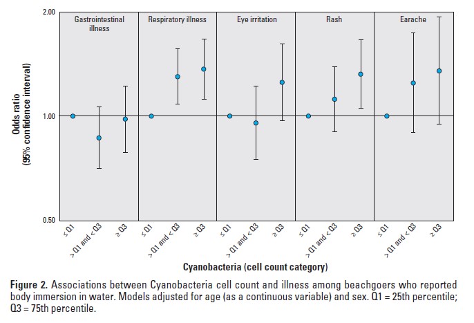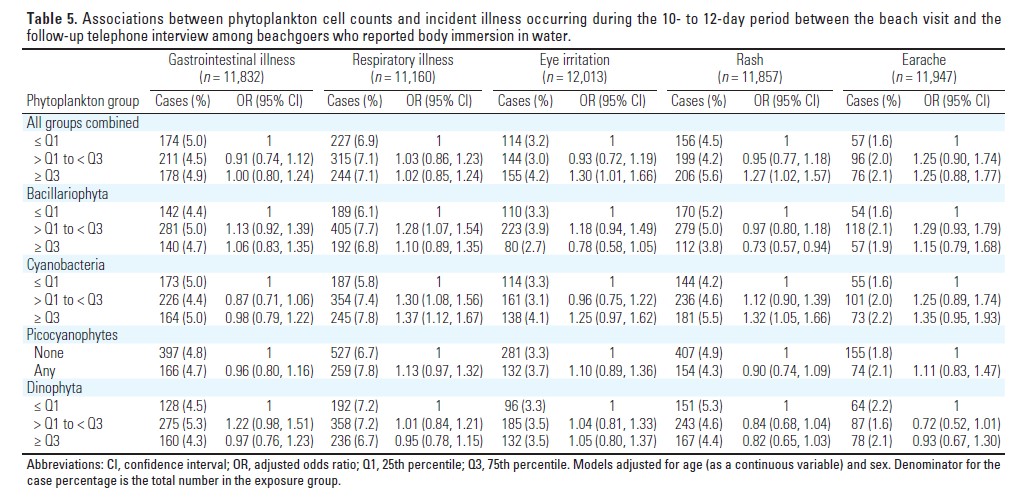 40.En la tabla anterior, ¿cuál sería la Odds ratio y el IC 95% para enfermedades respiratorias y en Cianobacterias entre los días con concentración por debajo de Q1 respecto a los días con concentración superior a Q3?