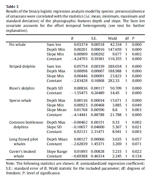 42.En la tabla siguiente, ¿cuál sería la Odds ratio y el IC 95% de la variable Slope Min en la especie Sperm whale? ¿Es coherente con el p-valor obtenido?