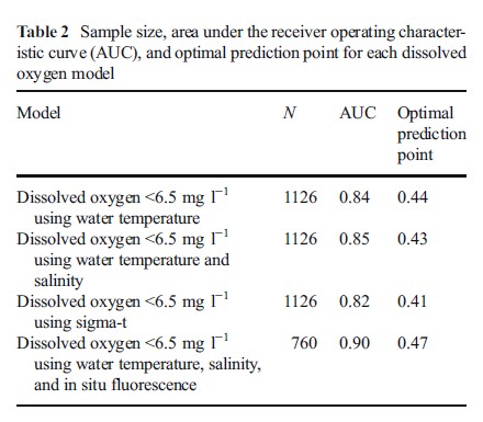 52.En la tabla siguiente, ¿cuál es el peor método para pronosticar si el oxígeno disuelto es inferior a 6.5?