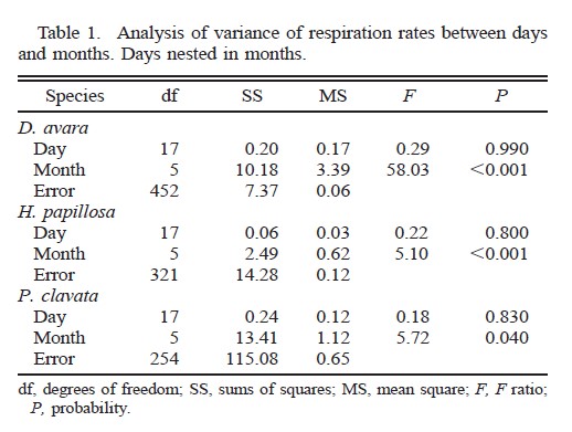 10.En la siguiente tabla, respecto a la especie Thenea abyssorum, qué porcentaje de ejemplares respiran con valores por encima de 0.48?