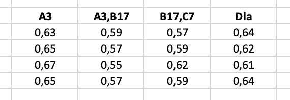 14.En la tabla siguiente, ¿cuál es la correlación mayor?