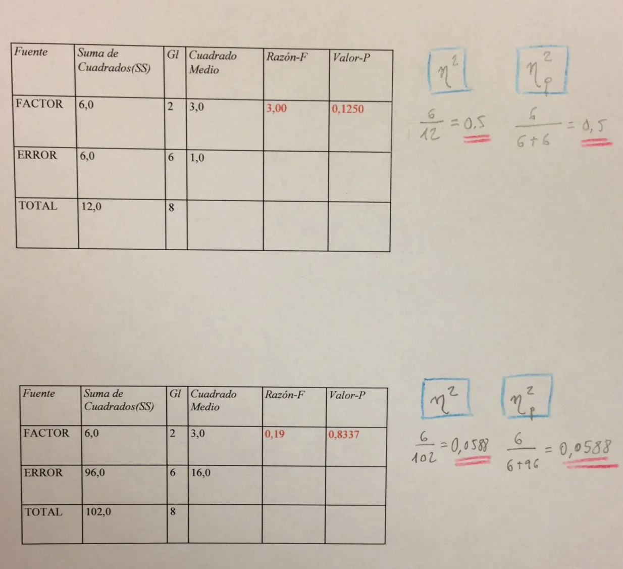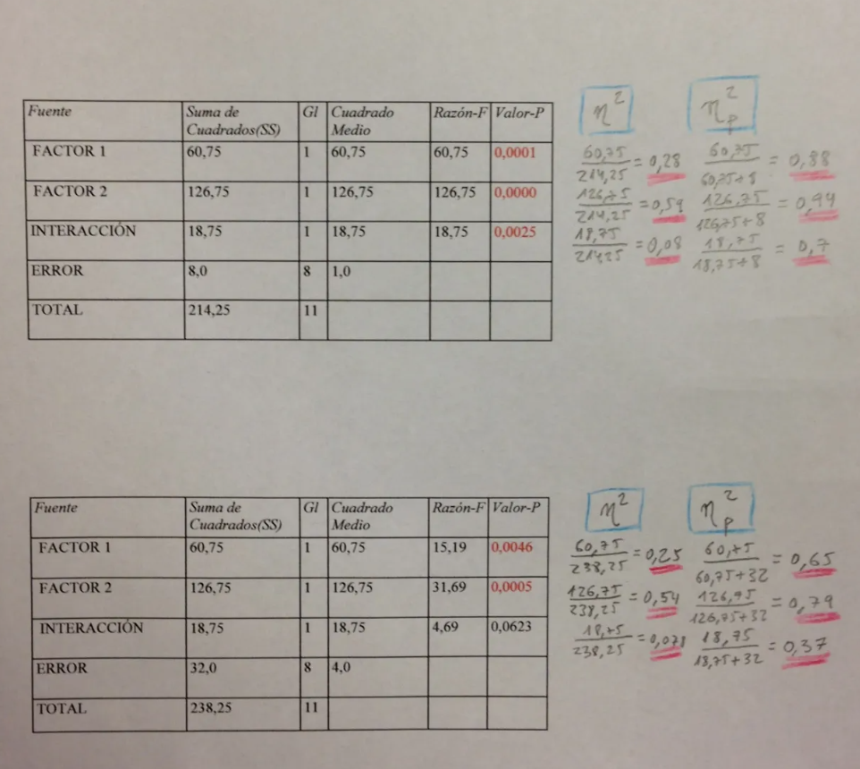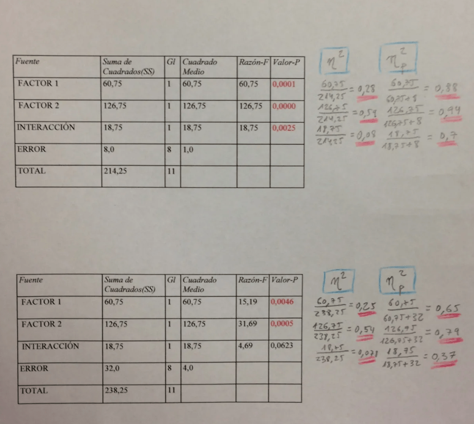 Elige primero de los cuatro siguientes listados el adecuado. A continuación realiza los cocientes adecuados y calcula si el efecto es significativo o no.