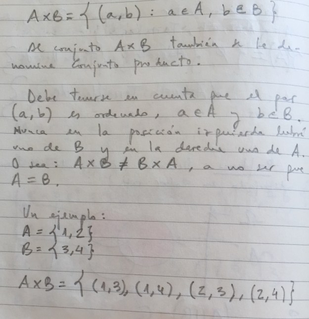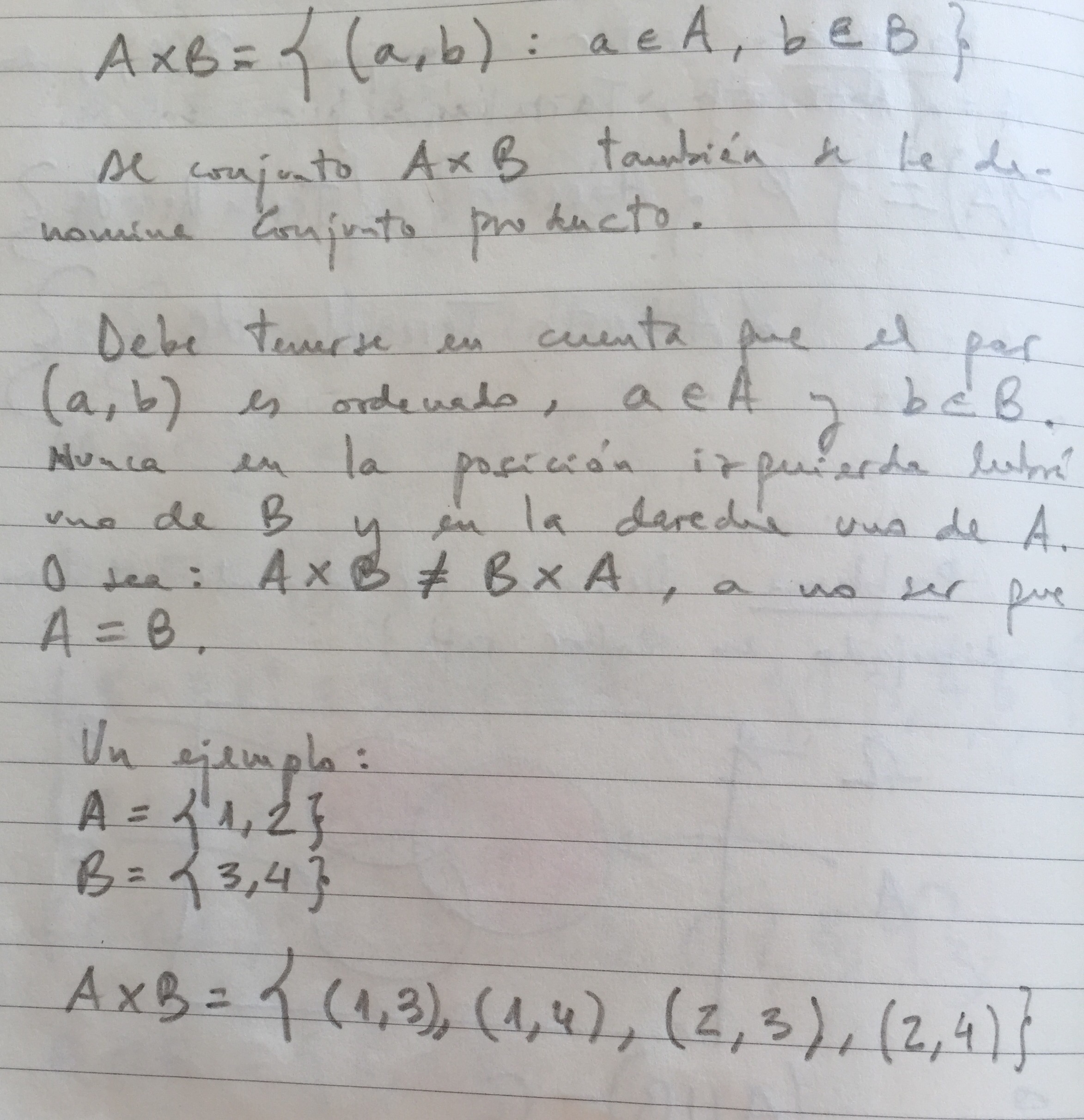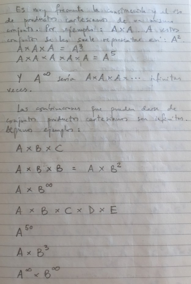 Otros conjuntos muy importantes, en matemáticas, son los conjuntos formados por el producto cartesiano de otros conjuntos: