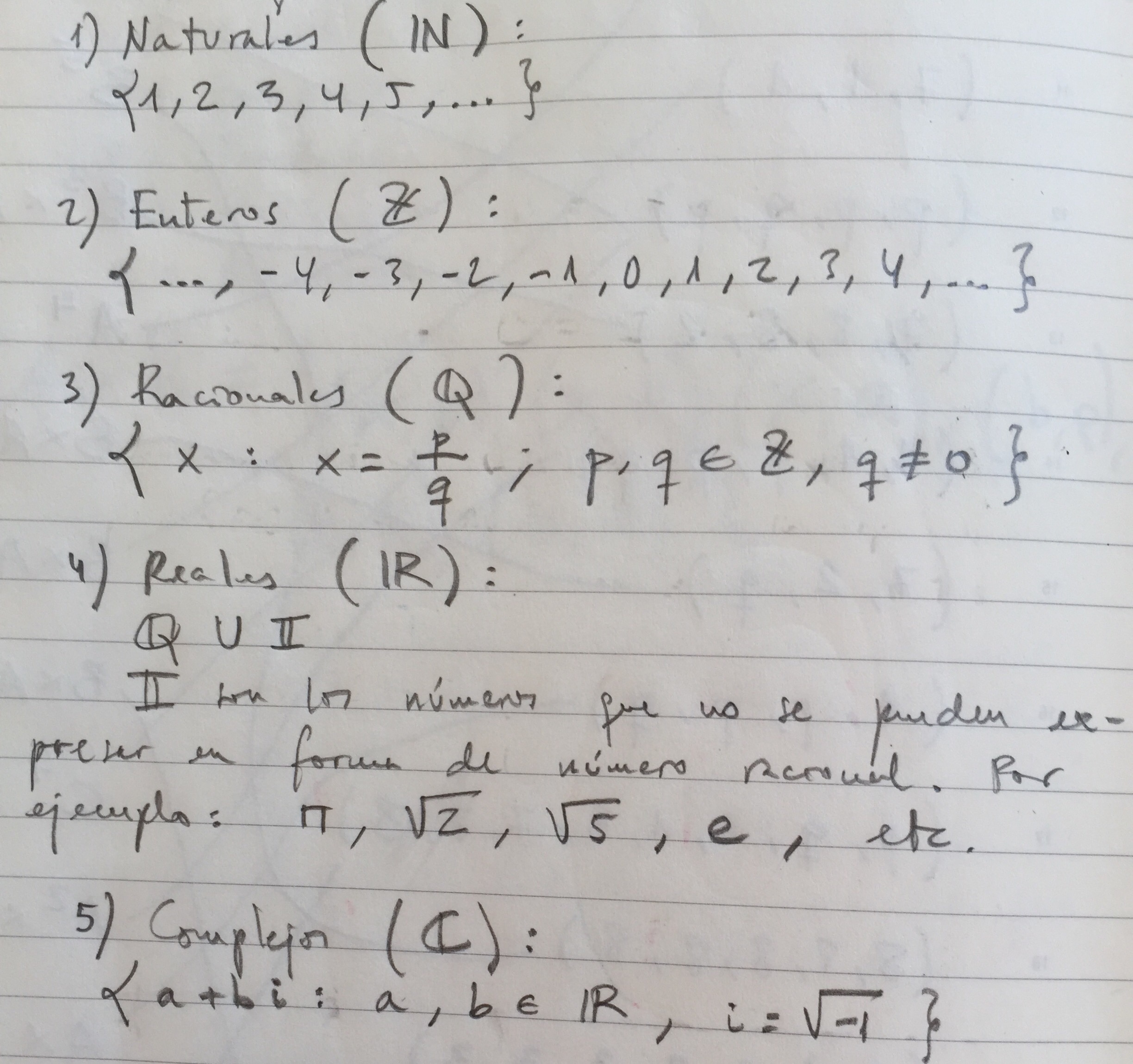 Conjuntos usuales en matemáticas son, en primer lugar, los conjuntos de números: