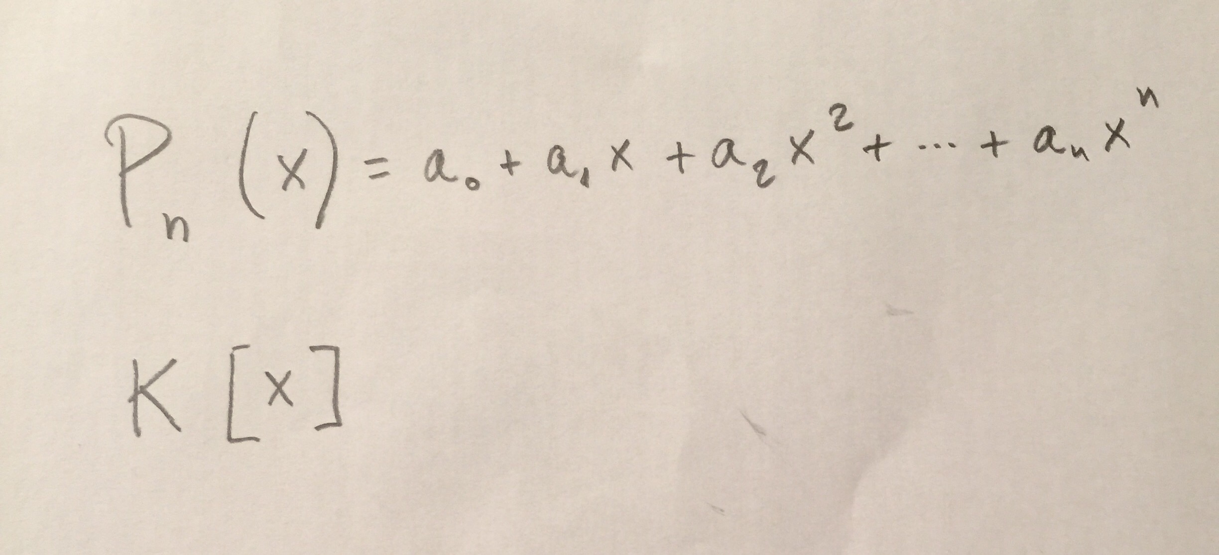 Un conjunto muy utilizado en matemáticas es el conjunto de polinomios. Escrito de la siguiente forma: