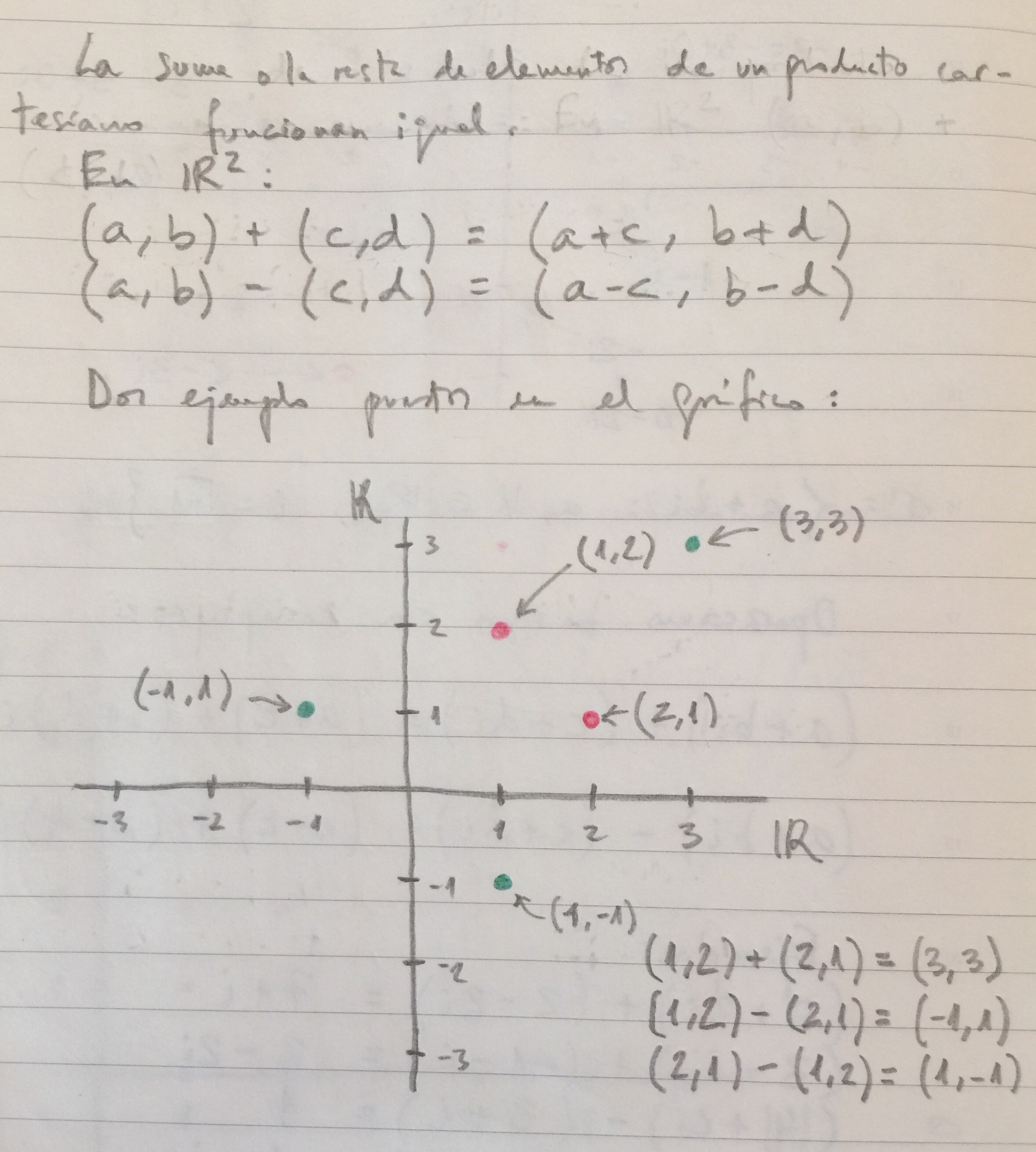 Entre los elementos de los productos cartesianos se pueden establecer operaciones, como en los conjuntos de números: