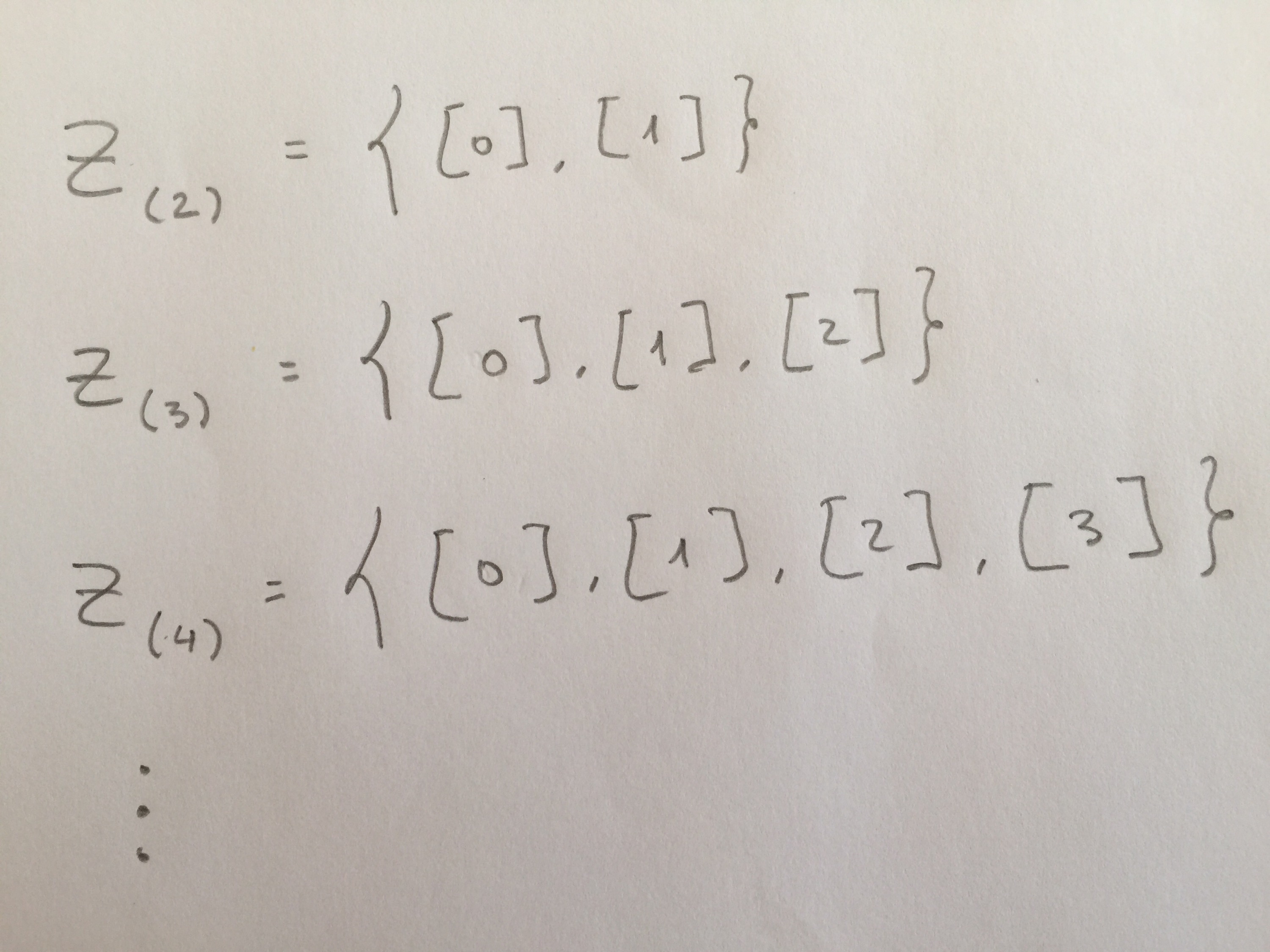 Otros conjuntos muy utilizados en matemáticas son los Enteros módulo un natural mayor que uno. Por ejemplo, los Enteros módulo 2, los Enteros módulo 3, lo Enteros módulo 4, etc: