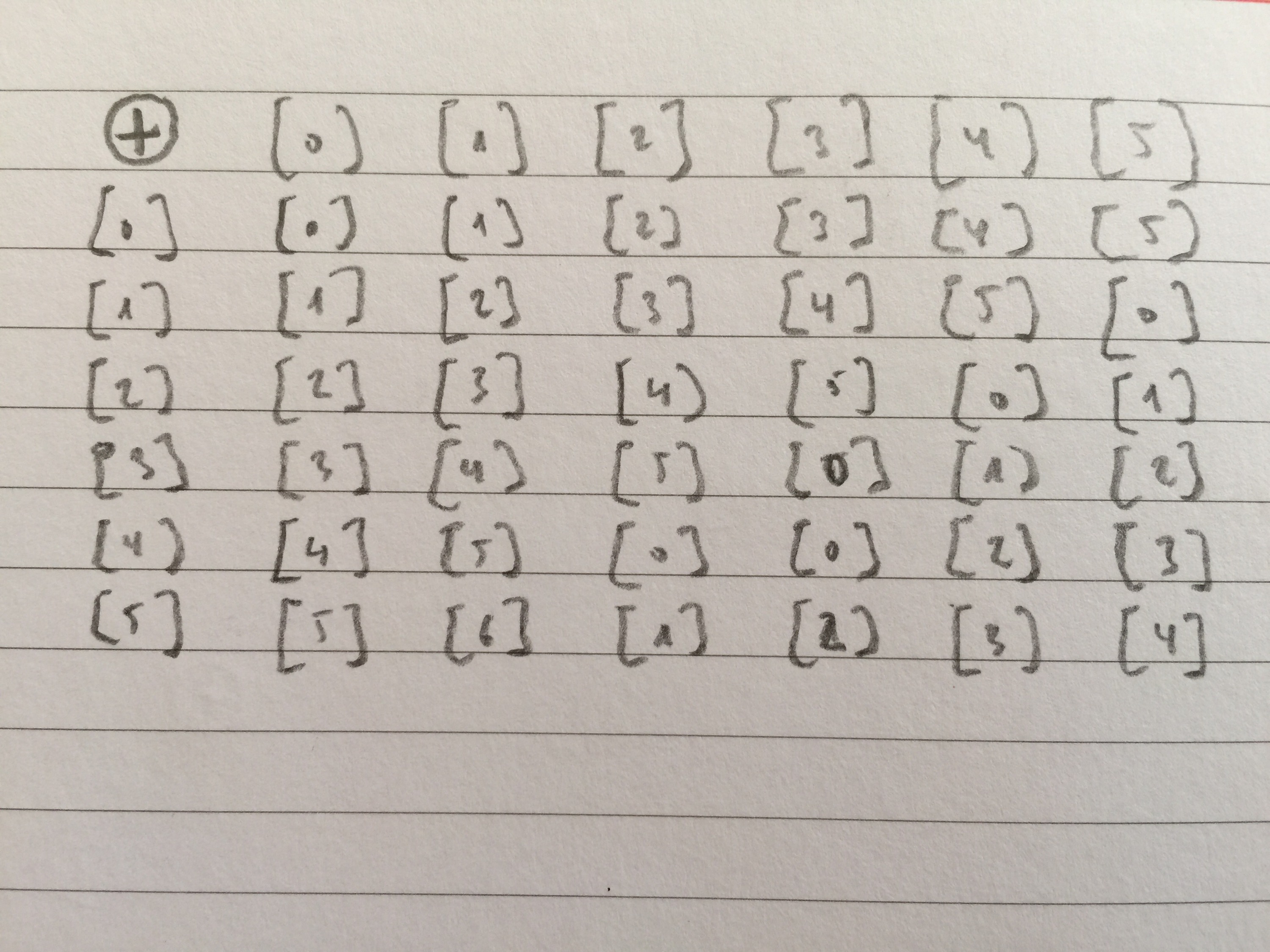 Veamos con detalle el conjunto de los Enteros módulo 6: