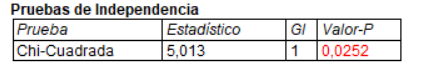 b.Ji-cuadrado=7.37 de una tabla 3X2 y p-valor de 0.005