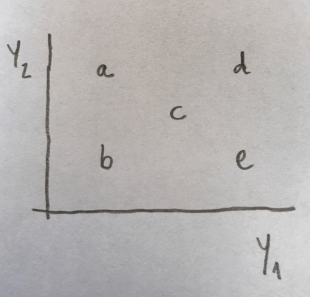 14.¿Cuál es el punto b en un Análisis de Componentes Principales con las dos siguientes primeras componentes principales: Y1=0.5X1+0.5X2-0.5X3-0.5X4 e Y2=0.01X1+0.5X2-0.5X3-0.01X4?
