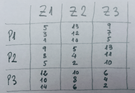 13.Tenemos los siguientes datos en un estudio donde se aplican tres tratamientos psicoterapéuticos (P1, P2, P3) en pacientes con la misma patología de tres zonas del mundo muy distintas (Z1, Z2, Z3). Con los datos obtenidos se pretende ver la diferencia entre tratamientos, entre zonas y ver, finalmente, si hay o no interacción. ¿Cuál es la afirmación más razonable respecto a los resultados que podríamos obtener en el ANOVA?: