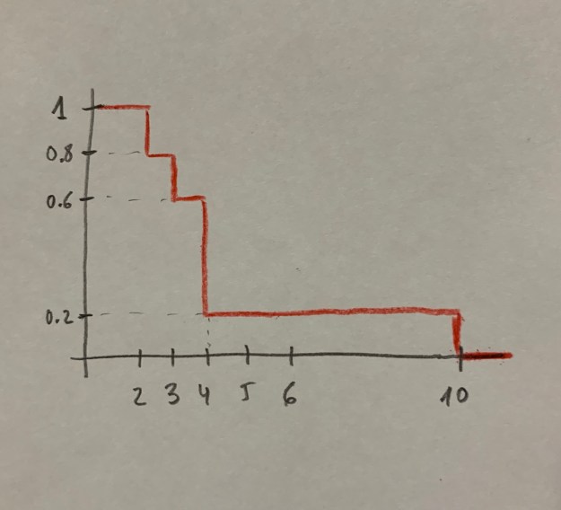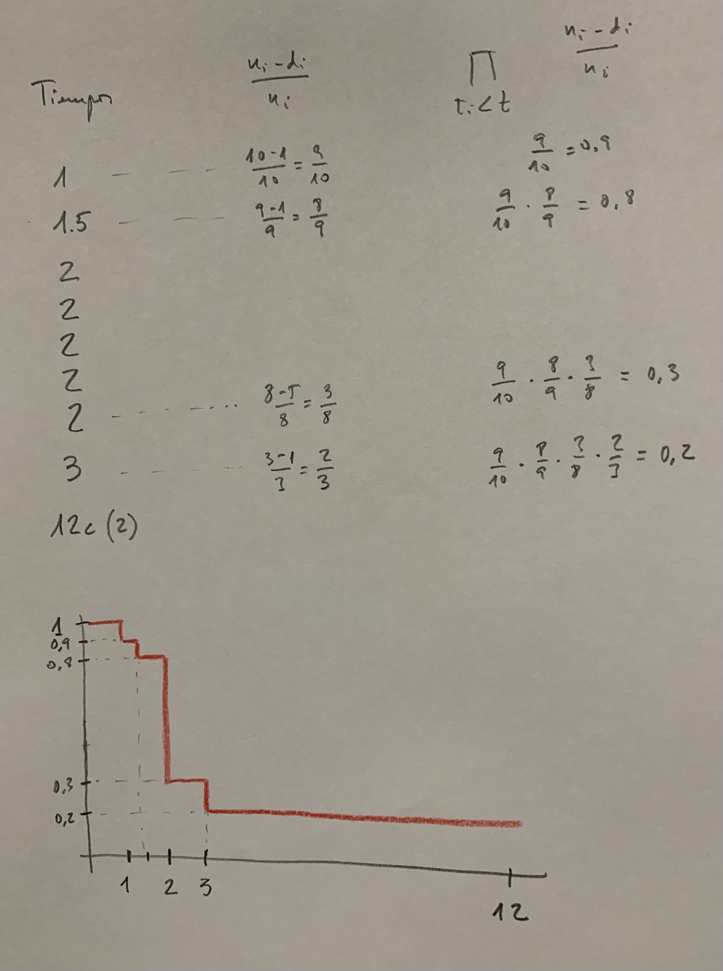 5.Construir la curva de supervivencia de la siguiente muestra de seguimiento de 12 meses: