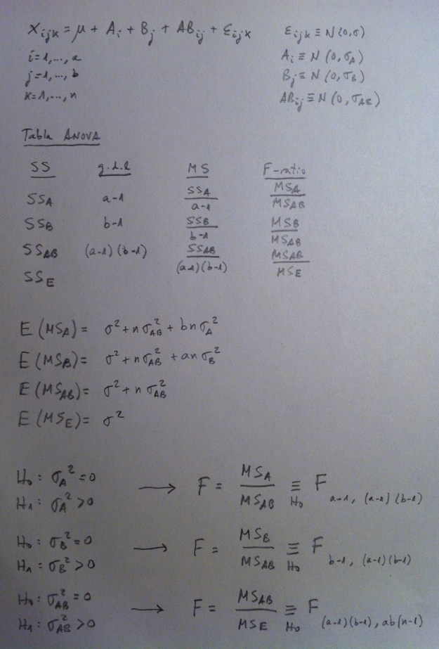Se quiere estudiar, en la Unión Europea, qué factor introduce más variabilidad en la medida de una variable de contaminación ambiental: El país donde se realiza la medida, el laboratorio que hace el análisis o el operario que realiza el análisis concreto. Para ello se toman tres países al azar de la UE, tres laboratorios al azar en cada uno de los países y dos operarios en cada uno de los laboratorios. Estos operarios realizan el análisis por triplicado. Se prepara una muestra común y se manda a los países y laboratorios seleccionados. Los resultados son los siguientes: